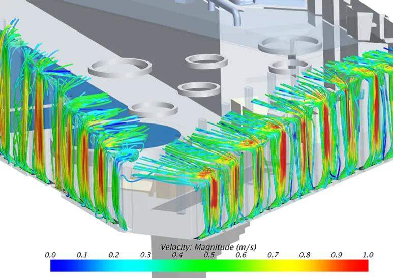 Цифровое моделирование помогло эффективно действовать на каждом этапе, наглядно доносить информацию до заказчика, вовлекать его в проект, быстро получать конструктивную обратную связь. Специфическая задача – проектирование системы вентиляции таким образом, чтобы зимой на окнах не появлялся конденсат – была решена, благодаря разработанной математической модели температурных и скоростных полей. С учетом полученных результатов в информационной модели были размещены воздухораспределители, чтобы такая проблема не возникла.